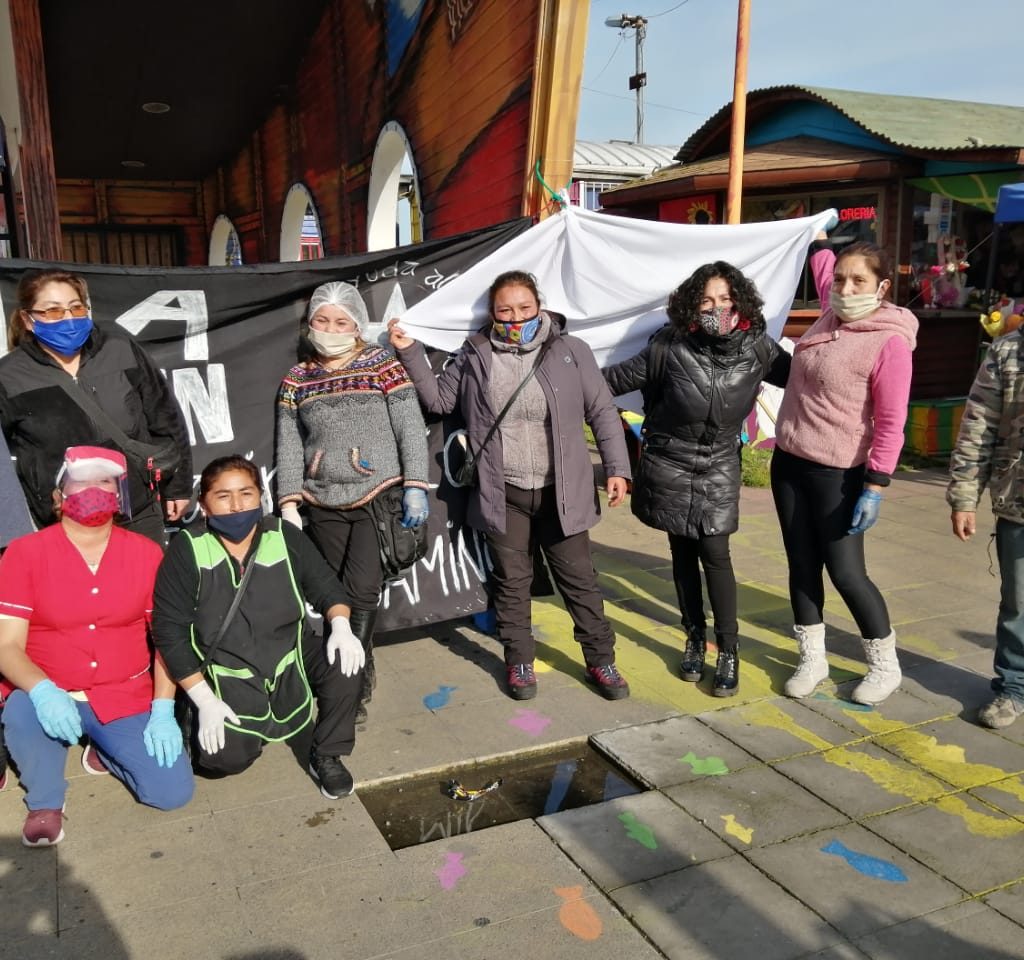 Finalmente, los representantes sindicales de la Federación de Comerciantes Ambulantes, la Coordinadora No + Violencia de Género, la Federación Nacional de Profesionales de los Servicios de Salud de Puerto Montt (Fenpruss) y la ANEF regional, se instalaron en la plaza del centro de la ciudad, frente a la gobernación y entregaron más de 200 raciones de platos de lentejas con longanizas a personas en situación de calle y a los que necesitaran un plato de comida.