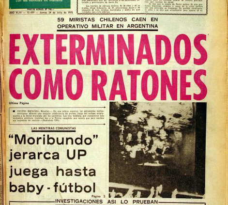 En un mes más se cumplirán 48 años del titular más injurioso en la historia de la prensa nacional. Publicado el 24 de julio de 1975 en el diario La Segunda, “exterminados como ratones” fue el arquetipo del montaje político en dictadura. El titular de la infamia, como ha sido reconocido históricamente, fue una operación comunicacional que hizo pasar como enfrentamientos en Argentina, una horrorosa matanza en contra de 119 opositores al régimen militar en Chile.