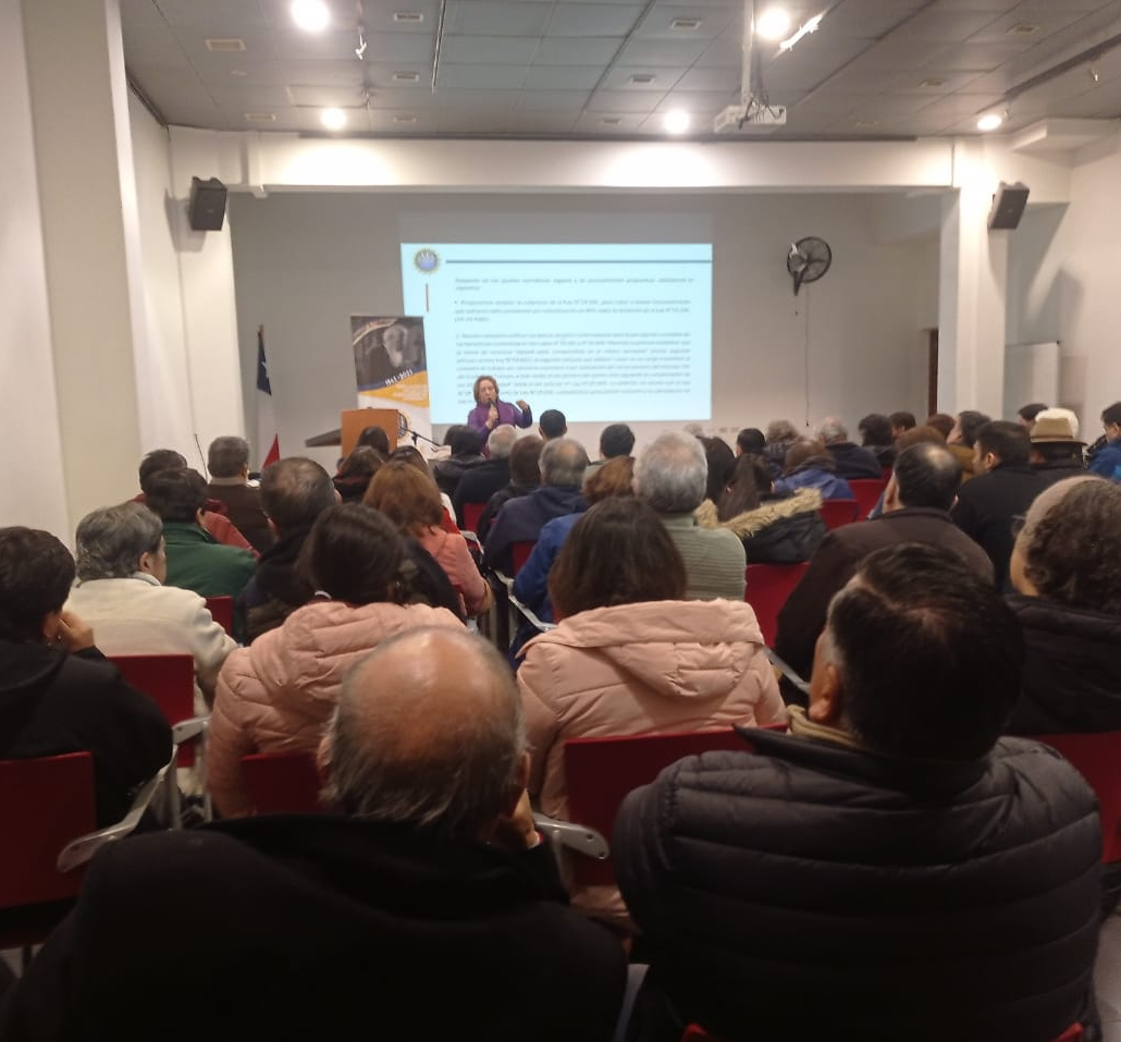 La charla, organizada por ANEF Aysén, contó con la presencia y exposición de la dirigente nacional Ana María Gutiérrez, además de la participación de trabajadores y trabajadoras de distintos servicios públicos interesados en el incentivo al retiro, como también funcionarios de los departamentos de gestión y desarrollo de personas.