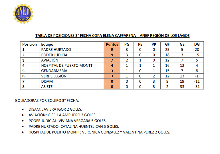 Resultado y Fixture Copa Elena Caffarena_Anef Los Lagos_Fecha 3