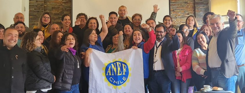 on el salón principal de la Anef completo de dirigentes y líderes de diferentes agrupaciones y sindicatos afiliados a la Anef Valparaíso, el consejo regional acompañado del Presidente de Anef Chile, José Pérez Debelli y la secretaria nacional, Náyade Zúñiga, realizaron una asamblea ampliada informativa para comunicar a las bases y discutir sobre temáticas relevantes como la Mesa del Sector Público, las votaciones para la nueva constitución, la solicitud de Teletrabajo entre otras materias.