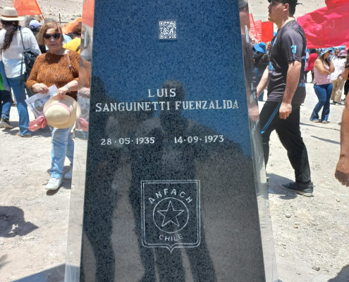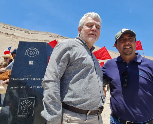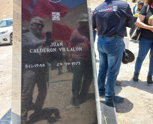 En tanto, el presidente de la Asociación Nacional de Funcionaria/os de Aduanas de Chile [ANFACH], Mauricio Soudré, expresó que los trabajadores aduaneros fueron un ejemplo de profesionalismo y compromiso con sus labores. “Ellos murieron por el cumplimiento de su deber. Ellos no fueron desaparecidos por sus ideales políticos. Estos trabajadores realizaban investigación aduanera por narcotráfico y contrabando. En esos tiempos donde había problemas de insumos y alimentos escondidos, ellos descubrían esos escondites y desmantelaban a bandas organizadas, pero también demostraba como otros hombres buscaban desestabilizar al gobierno de Salvador Allende con la falta de alimentos. Mantener la memoria viva, en cada una de las agrupaciones manifestando sus ideas y entregando a Pisagua para conmemorar a nuestros compañeros. La Anfach, la Anef y la Corporación Museo de Pisagua, en erigir un monolito de granito negro que quedarán como símbolo de la atrocidades de la dictadura y la represión contra las y los trabajadores”, concluyó el representante de las y los trabajadores de Aduanas del país.