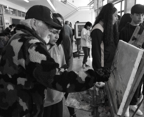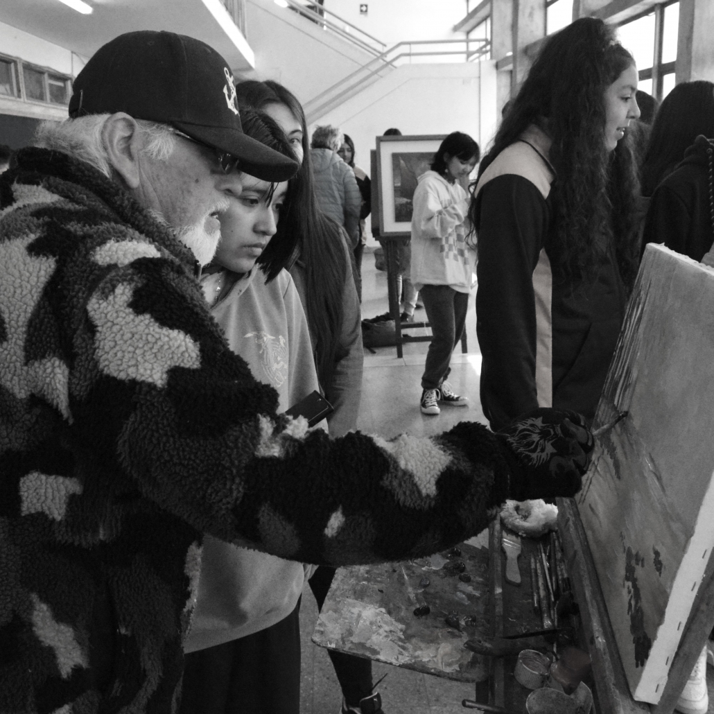 En un encuentro pedagógico y cultural, la cooperativa de artistas Rutarte Sur y la galería de Arte Basg marine realizaron un encuentro donde desbordó el arte, la reflexión y la cultura con las y los estudiantes de la Escuela Anahuac en Chinquihue