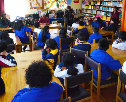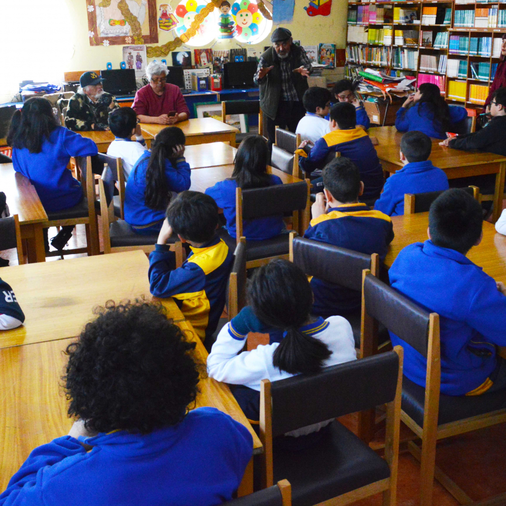 La jornada finalizó con el segundo conversatorio, donde niñas y niños de quinto año ba´sico lograron compartir con los artistas en la biblioteca del colegio. En el lugar preguntaron sobre sus metodologías de trabajo, como sentían el sur en sus obras o las influencias de sus padres en la vocación artística.