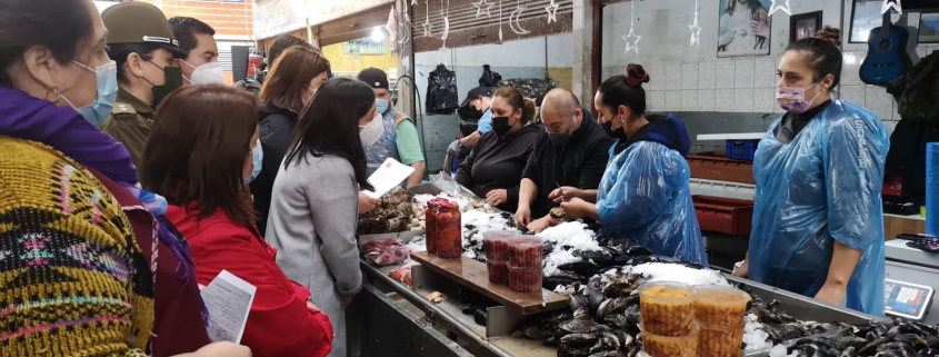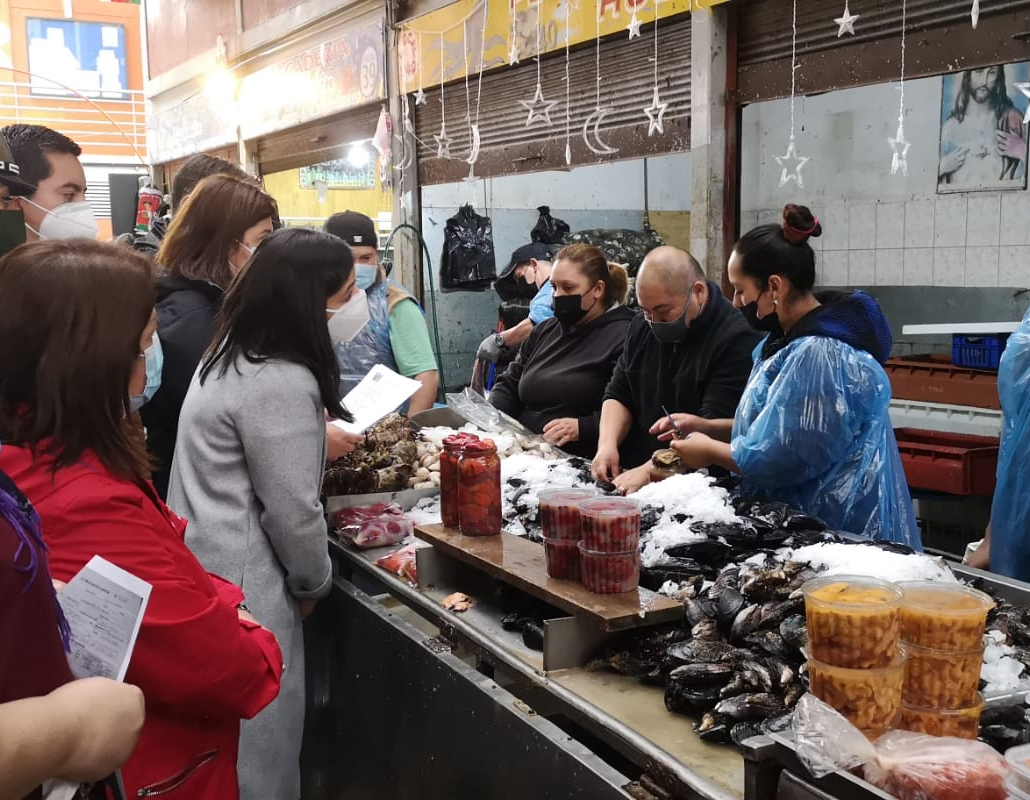 Autoridades acuden a Mercado Municipal de Puerto Montt para reforzar medidas de consumo seguro de mariscos