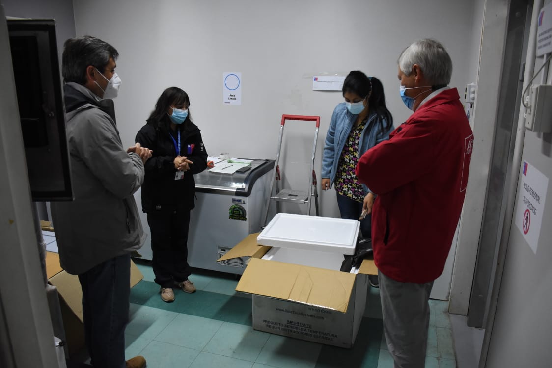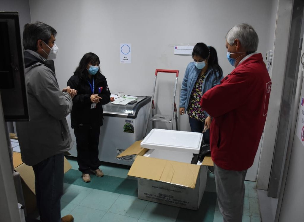 El Intendente, acompañado del Seremi de Salud, Alejandro Caroca, visitó la central de vacunas en Puerto Montt para supervisar la llegada de 31.200 nuevas dosis de Sinovac.
