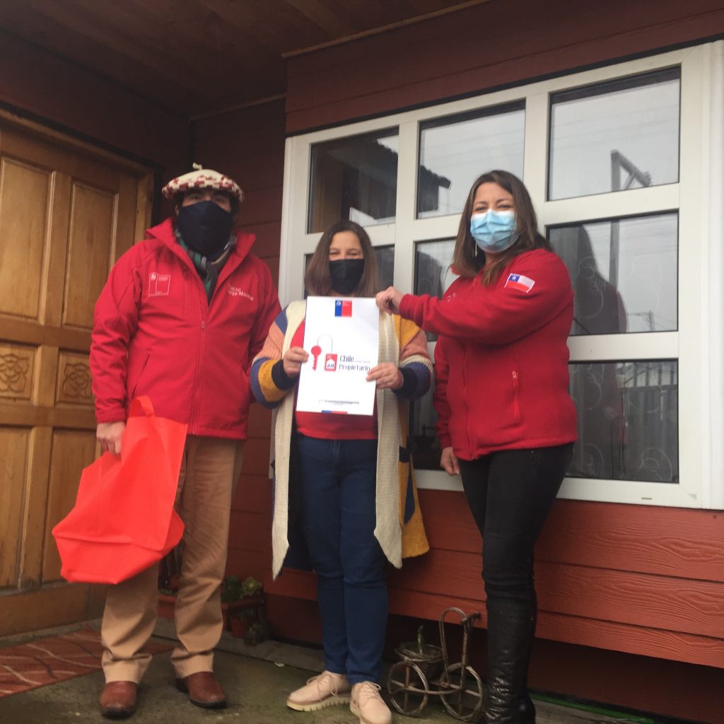 Una muy buena noticia recibió Verena Aguilar al recibir su anhelado título de dominio. Ella es jefa de hogar, trabajadora independiente y madre de 3 hijos. Vive en el sector Chin Chin Grande de Puerto Montt.