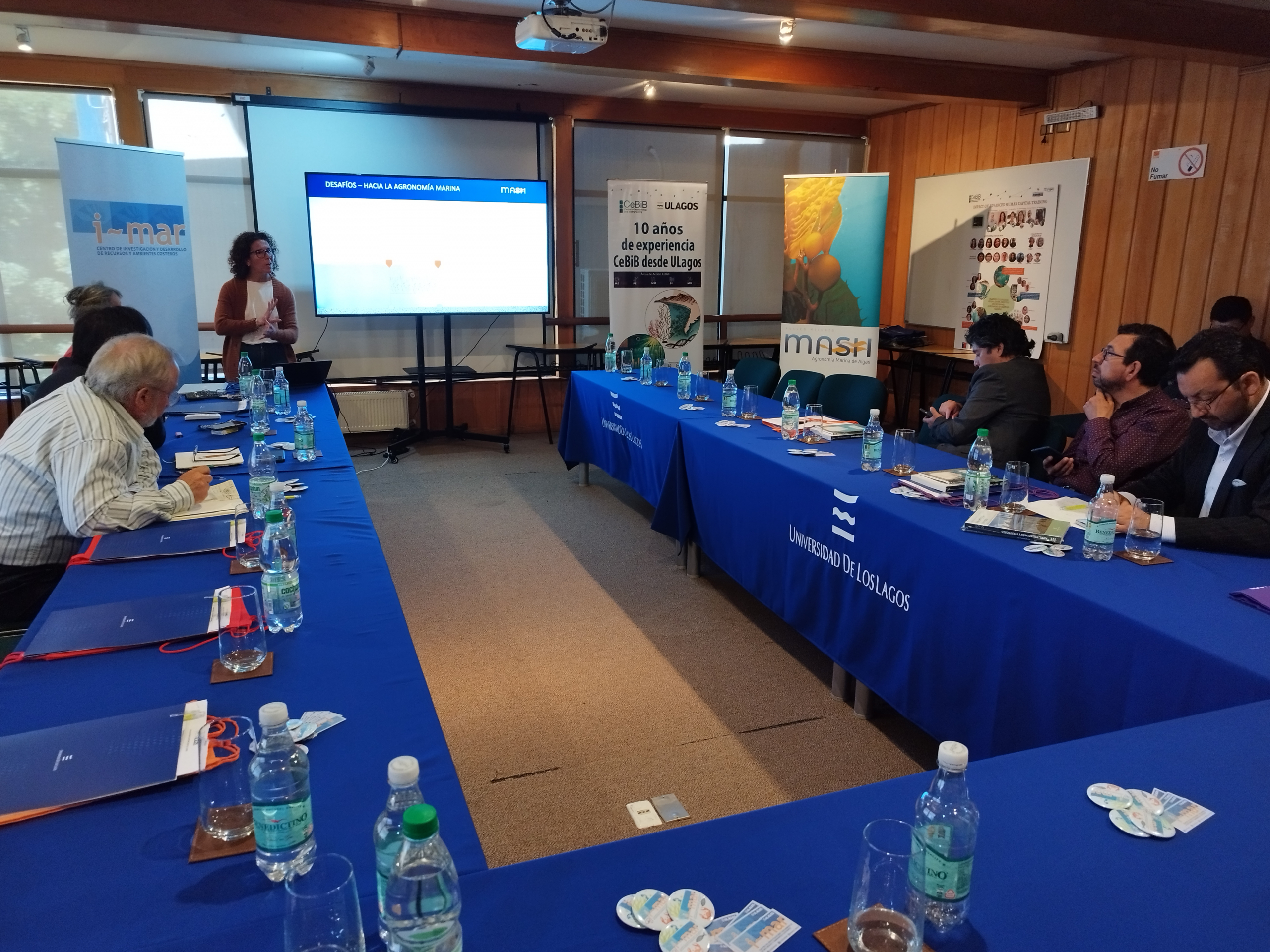 Durante la jornada de trabajo, se abordaron las siguientes temáticas: los proyectos de alto impacto científico y estratégicos del Centro i-mar relacionados con la agricultura de algas, el cuidado de las especies marinas, acuicultura y la marea roja en las exposiciones de los especialistas Máriam Hernández, Carolina Camus, Daniel Varela y Alejandro Buschmann, así como temas de identidad regional y transferencia de competencias a cargo del profesor Alejandro Santibáñez.
