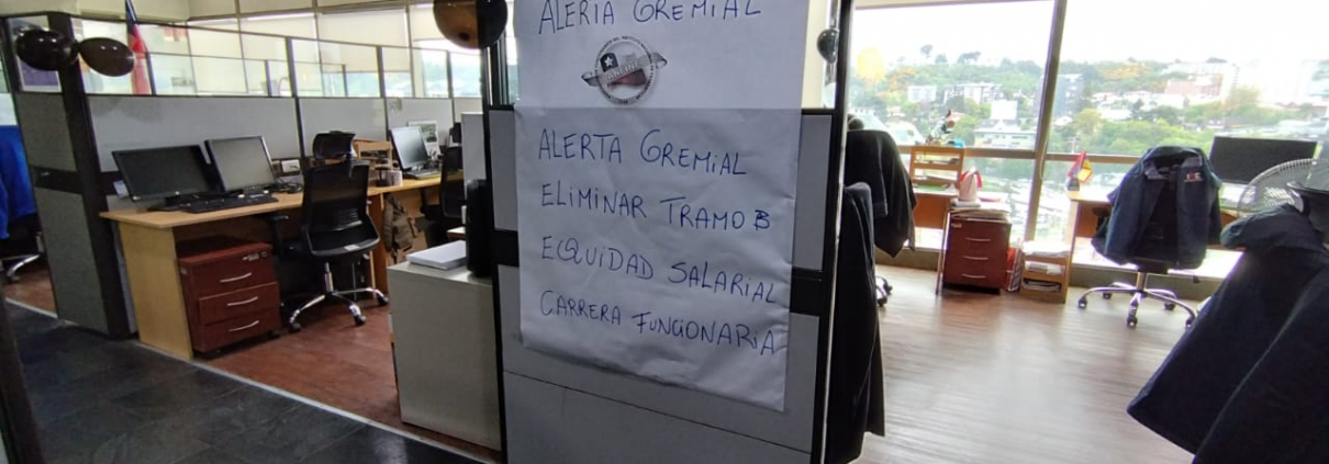 La dirigencia explica que en una Asamblea Nacional, las bases decidieron ir a paralización de brazos caídos durante los días 23 y 24 de octubre, por el no cumplimiento de acuerdos firmados. En ese mismo ámbito, remarca que existen funcionarios que están bajo bandas, es decir, trabajadores que llevan 18 años en la institución y tiene un grado 20, cuando debieran estar en grado 18 o más alto.