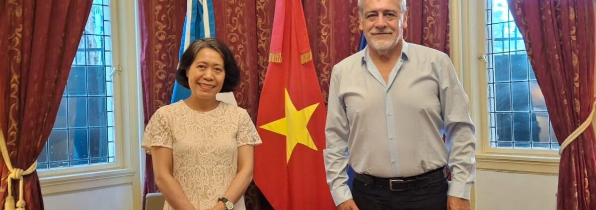 El presidente de la Confederación Latinoamericana y del Caribe de Trabajadores Estatales (CLATE), Julio Fuentes, sostuvo una reunión con la embajadora de la República Socialista de Vietnam, Minh Nguyet NGO, en la sede diplomática de ese país. Durante el encuentro, Fuentes presentó el trabajo internacional que la institución viene desarrollando, con especial énfasis en las últimas experiencias de vinculación con naciones asiáticas.