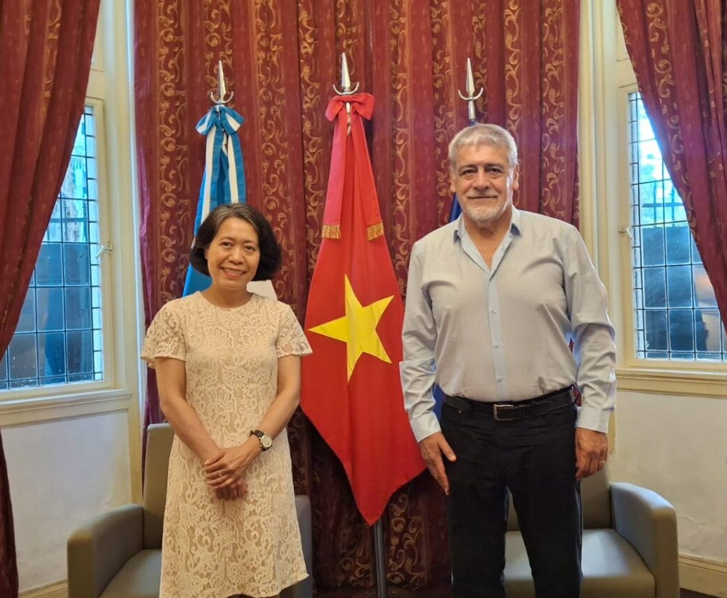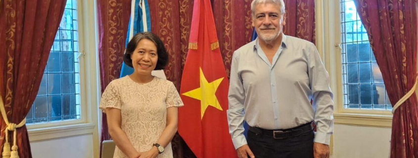 El presidente de la Confederación Latinoamericana y del Caribe de Trabajadores Estatales (CLATE), Julio Fuentes, sostuvo una reunión con la embajadora de la República Socialista de Vietnam, Minh Nguyet NGO, en la sede diplomática de ese país. Durante el encuentro, Fuentes presentó el trabajo internacional que la institución viene desarrollando, con especial énfasis en las últimas experiencias de vinculación con naciones asiáticas.