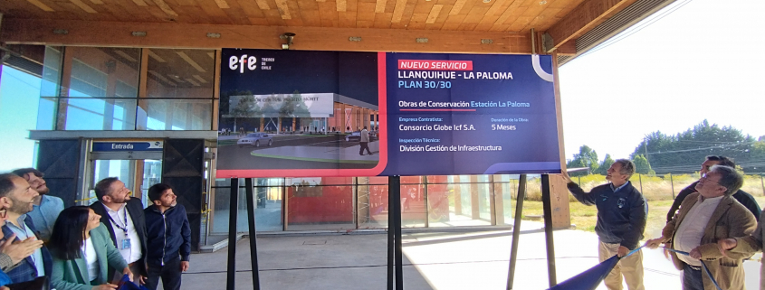 on en el lanzamiento oficial de la primera piedra se da inicio a la remodelación de la Estación La Paloma como parte del proyecto Trenes 30/30 que busca recuperar los trenes de cercanía entre la ciudad de Llanquihue y Puerto Montt.