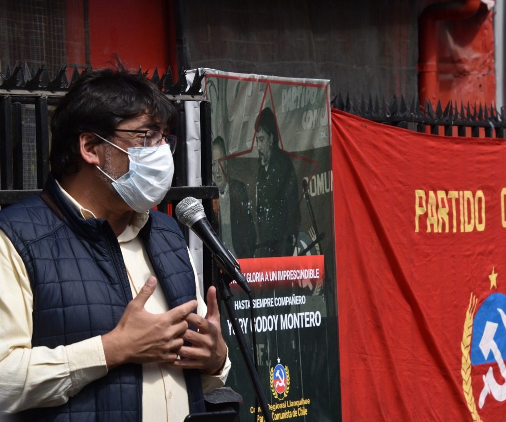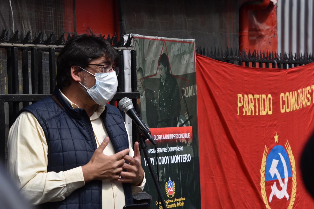Por este motivo, y luego de su participación en la conmemoración a los 52 años de la “Matanza de Pampa Irigoyen”, se dirigió hacia las dependencias del partido comunista, ubicado en calle Rengifo, donde muy emocionado, brindó un homenaje al fallecido Secretario regional del Partido Comunista, Yuri Godoy, quien perdiera la vida repentinamente la mañana del sábado 5 de septiembre de 2020, mientras era sometido a una cirugía cardiaca en la ciudad de Santiago.