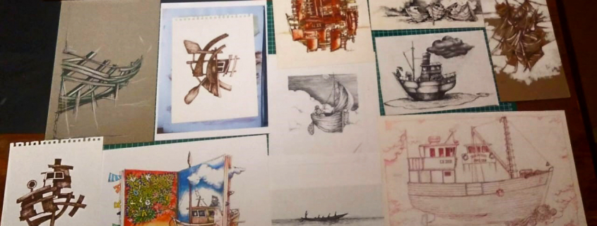 Así lo explica el propio creador al indicar que “Marinaciones toma como referencia las tradicionales marinas del sur de Chile , tomando el modelo bote o embarcación como un “sujeto” a representar, en un extenso ejercicio de aproximaciones estéticas”, Por otro lado la serie Navegantes “responde a la idea de un pueblo de Navegantes en busca de un mar desaparecido, haciendo clara referencia a las migraciones, personajes sin rostro, en busca de una orilla , de una patria y los Barcos de Nadie registra las embarcaciones en su última etapa de vida, un mix entre barcos y casas o viceversa, el desguace, la reubicación de sus partes ….la otra manera de seguir navegando” cierra el creador puertomontino.