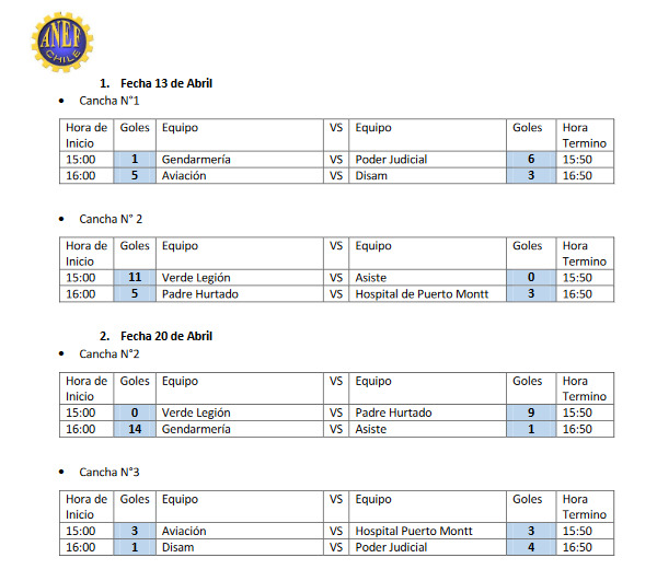 Son 8 equipos de diferentes instituciones que se componen de Verde Legión (Carabineros); Poder Judicial; Aviación; Padre Hurtado (Cesfams de Puerto Montt); Hospital de Puerto Montt; Disam; Gendarmería y Asiste. Quienes en cuadrangulares realizados los sábados por la tarde, compiten por el premio máximo del primer lugar. El campeonato se desarrolla en el campo Club Deportivo Austral en la capital regional.
