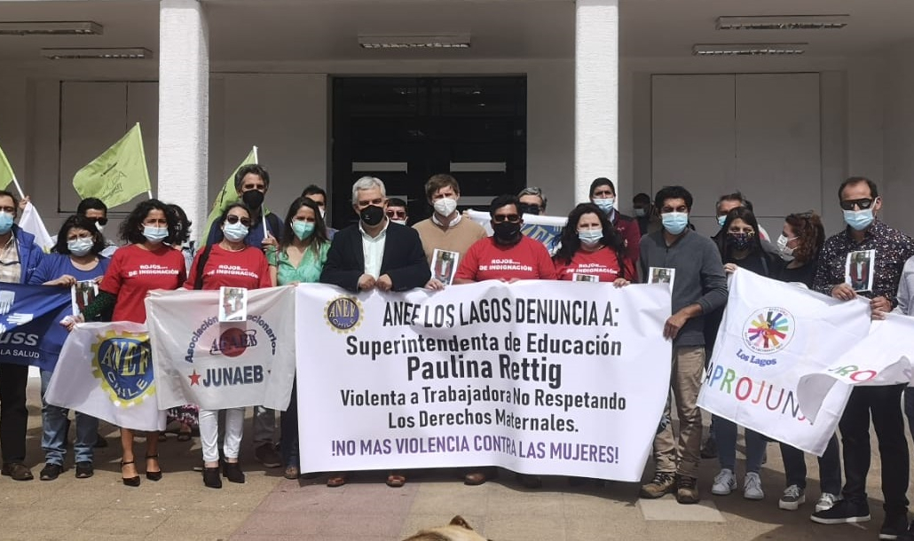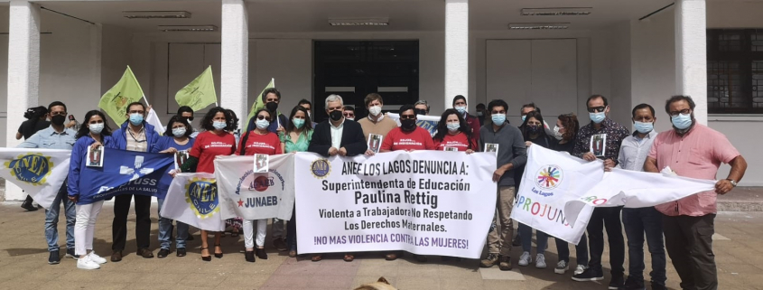 Dirigentes sindicales de diversos gremios se presentaron hoy en en el frontis de la ex Gobernación Provincial de Llanquihue para denunciar la situación que aqueja a una trabajadora de la Superintendencia de Educación de Los Lagos.