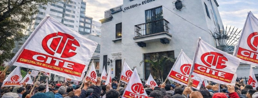 La Confederación Intersectorial de Trabajadores Estatales (CITE) del Perú, integrante de CLATE, realizó un plantón este miércoles frente al Colegio de Economistas de Lima, en rechazo a las declaraciones del Decano de esa institución, Manuel Mesía Herrera, quien amenazó con presentar una Demanda de Inconstitucionalidad contra la Ley 32563, que regula los derechos de los «trabajadores CAS».