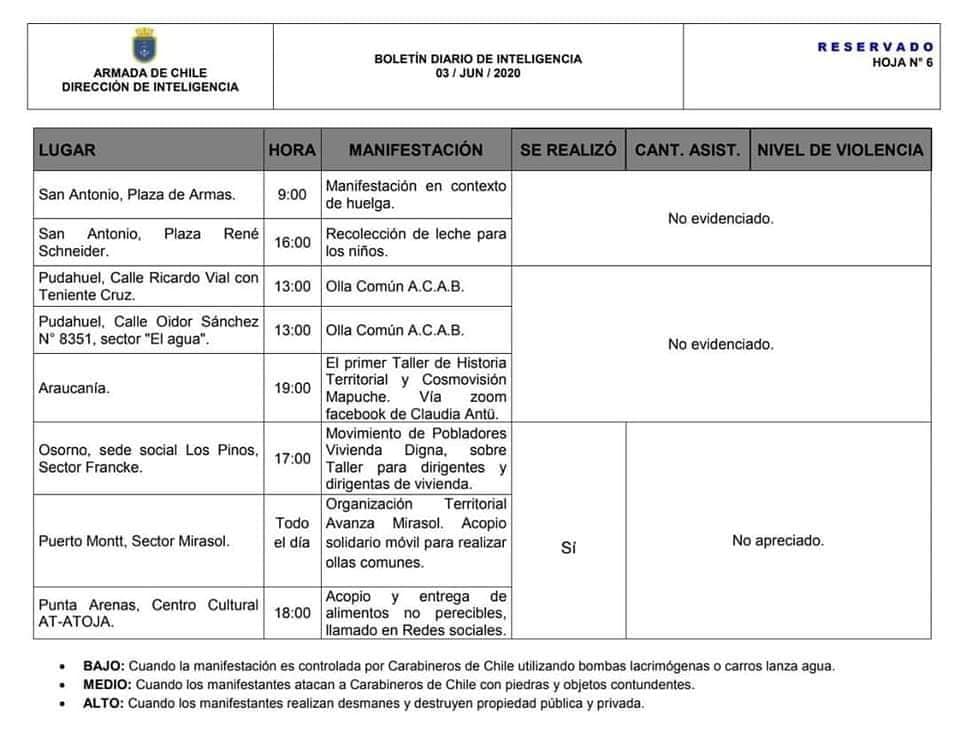 Se trata de una iniciativa de la Organización Territorial “Avanza Mirasol”, que según un “Boletín Diario de Inteligencia” fechado al 3 de junio de 2020 habría estado bajo vigilancia, tal como se puede apreciar en la siguiente imagen.