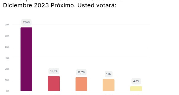 Otra pregunta sobre el proceso constitucional expuesta a los encuestados fue En el caso que la actual propuesta constitucional sea aprobada en el plebiscito del próximo 17 de diciembre, ¿usted cree qué?. Sobre dicha interrogante un 48% indicó que la nueva Constitución no resolverá los problemas del país; un 33,3% dijo no sentirse involucrado; un 11% expresó que sí tendremos una Constitución que nos represente y un 7,7% no sabe o no contesta.