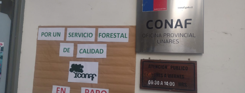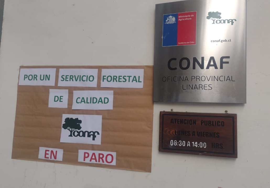 Los sindicatos Sinaprof y Sitrem, que representan a profesionales y trabajadores de la Corporación Nacional Forestal (CONAF), han iniciado una movilización nacional de dos días a partir del lunes 17 y martes 18 de marzo
