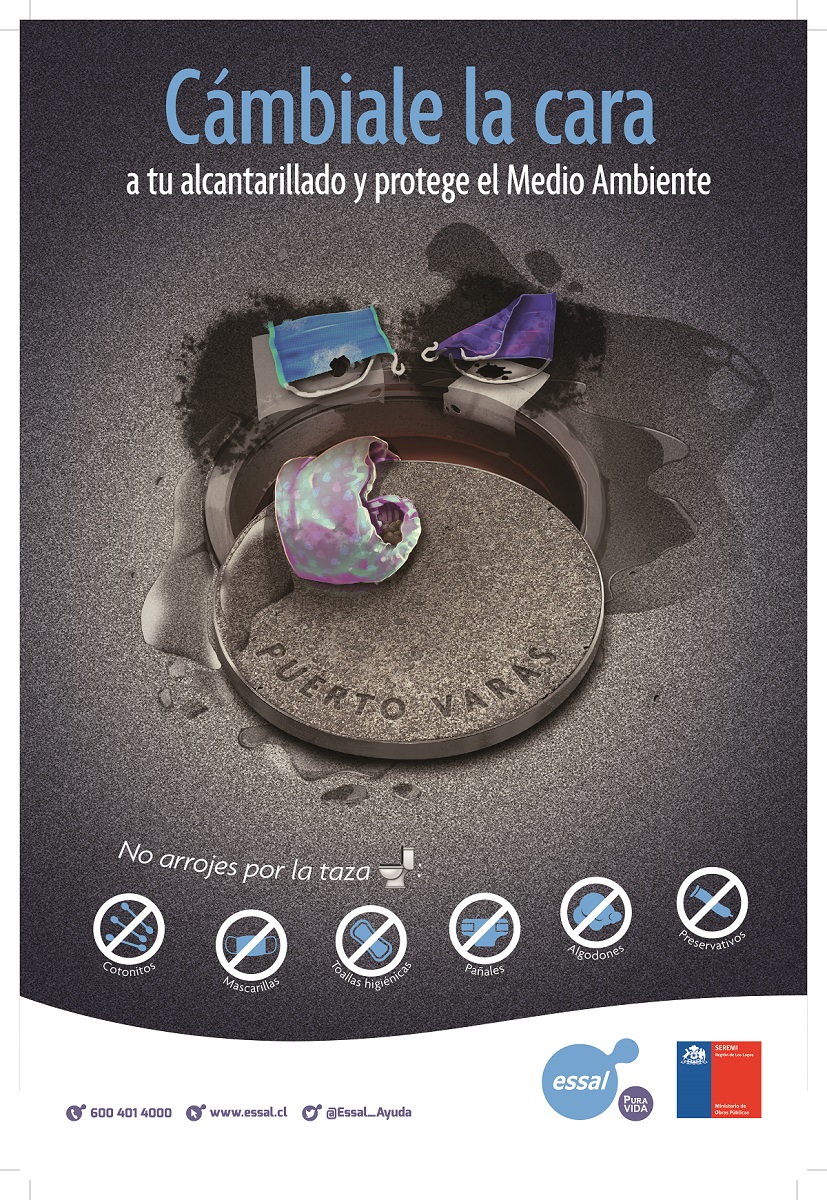 En la costanera de Puerto Varas lanzaron la campaña “Cámbiale la cara al alcantarillado y protege el Medio Ambiente”. La iniciativa busca concientizar a la comunidad sobre el adecuado uso del servicio del alcantarillado. De esta forma se espera evitar obstrucciones y posteriores rebalses de aguas servidas que afectan negativamente la calidad de vida de las personas y al Medio Ambiente.