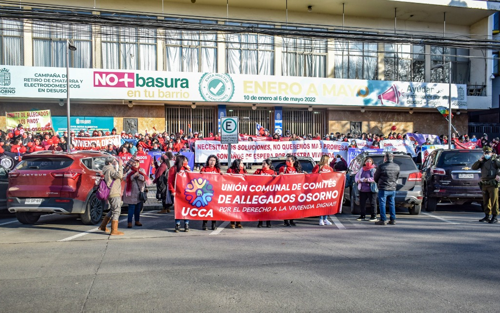 Fueron cerca de 400 personas de los Comités pertenecientes a la Unión Comunal de Allegados de Osorno quienes se manifestaron en la Plaza de Armas de esta ciudad en la tarde del martes. El objetivo de esta concentración fue demostrar su descontento con la demora en la concreción de su proyecto en Predio Baquedano, y exigir que los estudios correspondientes a humedales en dicho lugar se hagan lo más pronto posible.
