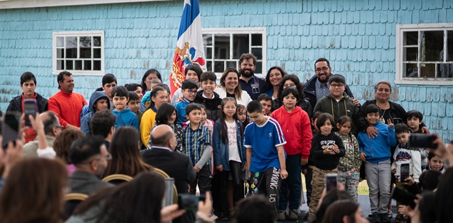 Tras tres días de actividades, el presidente Boric finalizó su gira inaugurando los trabajos de renovación de la Escuela Rural Huyar Alto, isla de Quinchao.