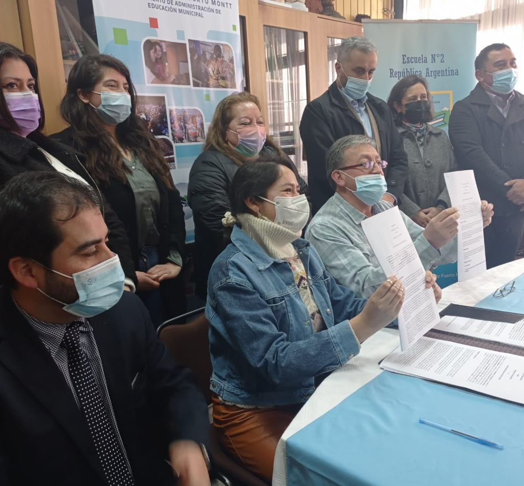En la Escuela República Argentina se reunieron el Alcalde Gervoy Paredes, la jefa Daem María Luisa Rivera, la Seremi de Educación Daniela Carvacho, entre otros. Las autoridades celebraron el primer hito para dar el vamos al Plan de Transición entre el Ministerio de Educación y el municipio de Puerto Montt.