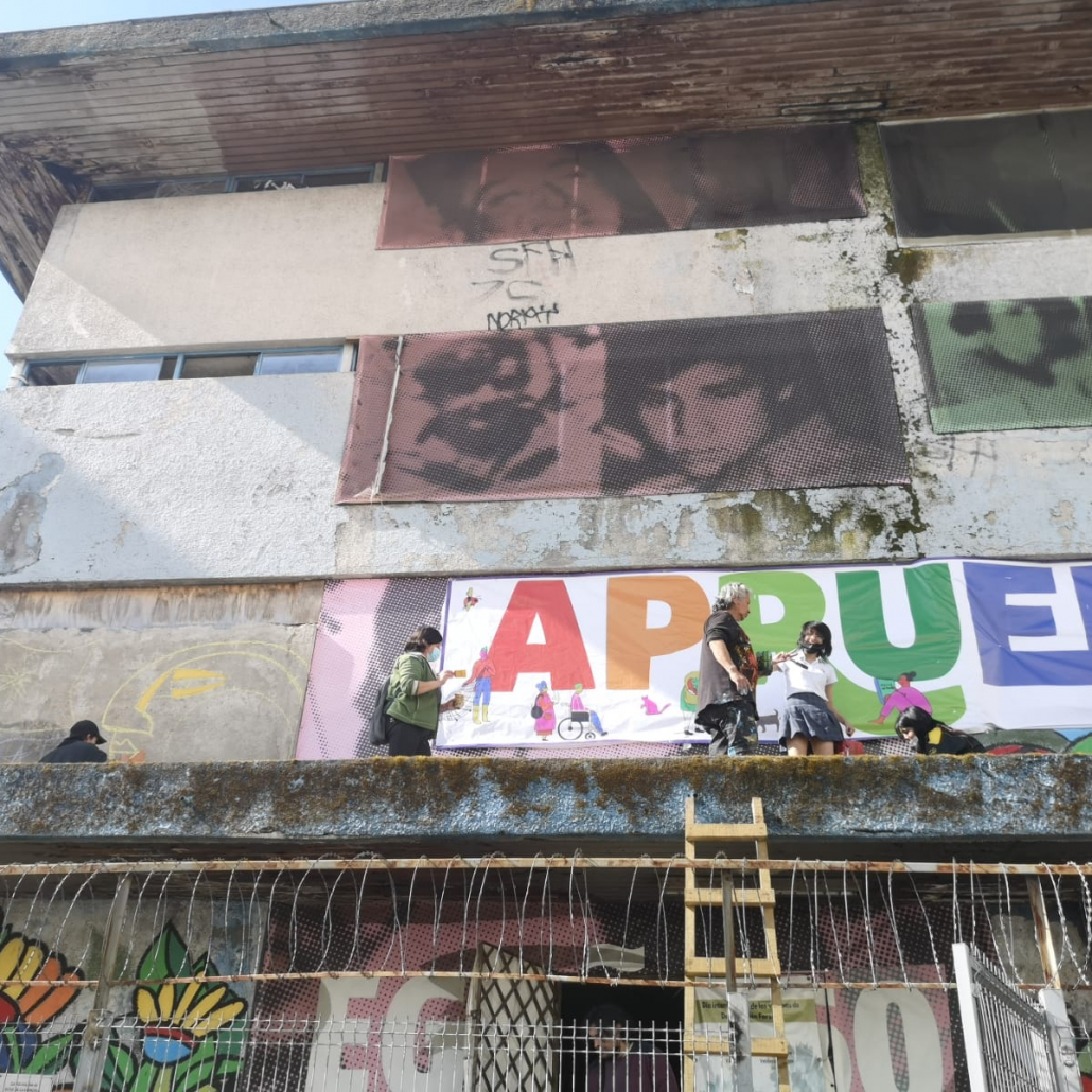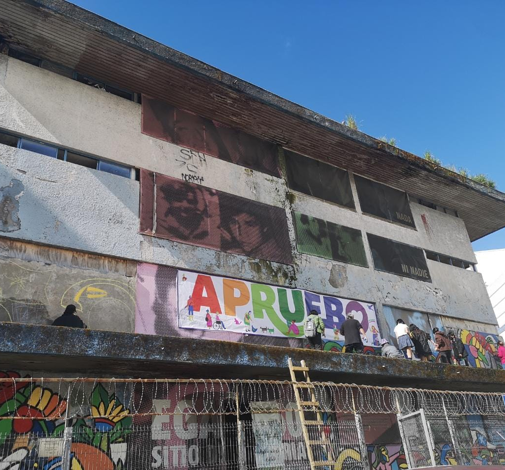 En el Sitio de Memoria Egaña 60 se dieron cita los comandos por el Apruebo de Puerto Montt, quienes con el apoyo de vecinos y vecinas y transeúntes que se sumaron a la actividad, restauraron el arte mural de la ex PDI.
