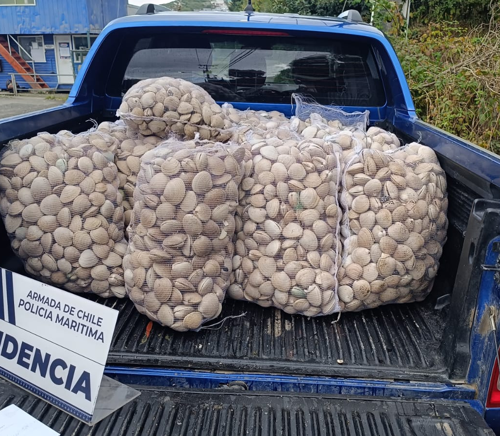 El armador de la nave quedó citado a declarar ante el Juzgado de Letras y Garantía de Calbuco, mientras que las almejas incautadas fueron destruidas.
