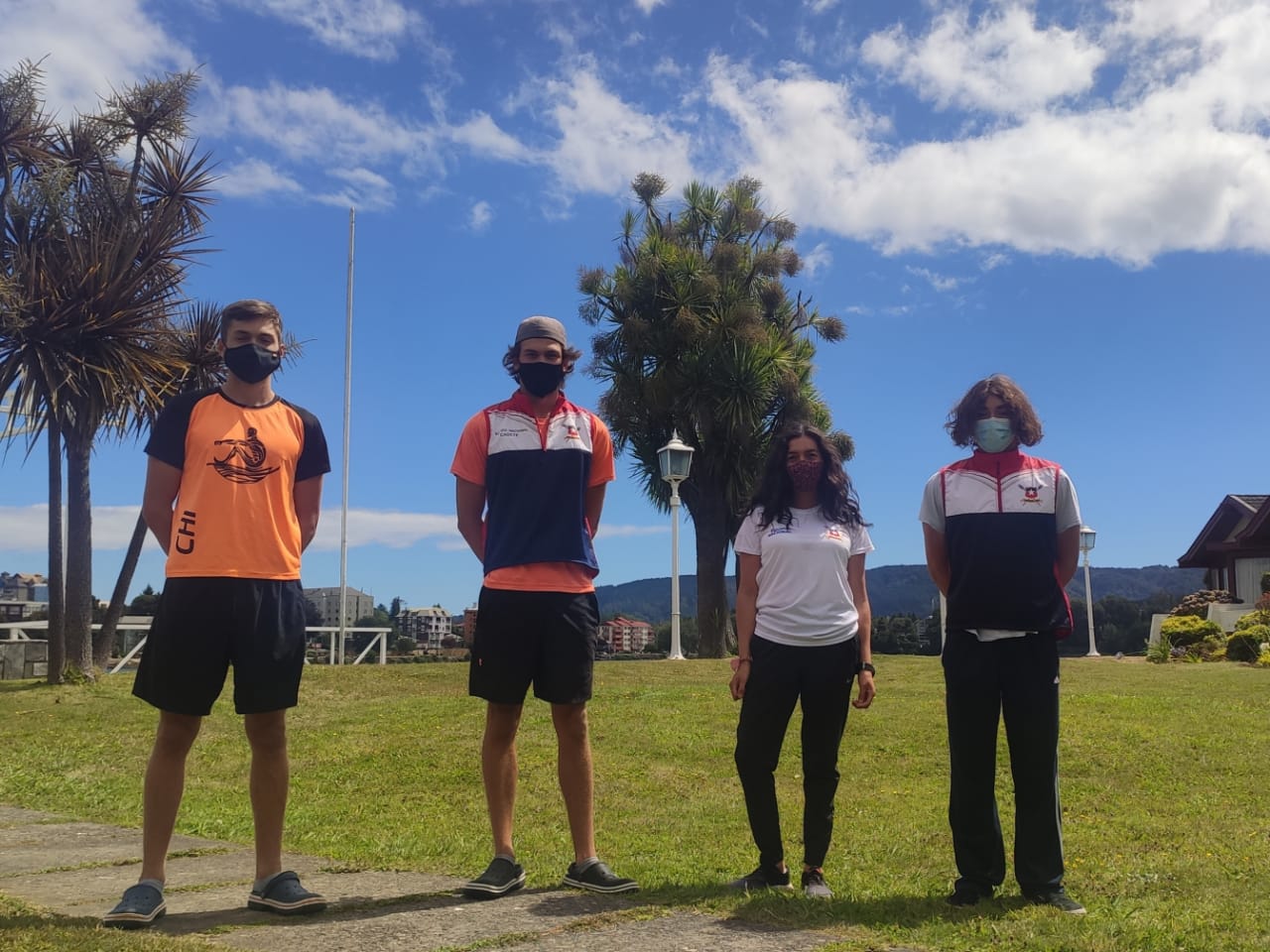Se trata de Nikolas Reinke y Agustín Álvarez del Club Náutico Viento Sur de Llanquihue y Cristóbal Canales del Club Viento y Marea de Puerto Montt. Estan compañados por Carmen Gloria Bustos, integrante del cuerpo técnico.