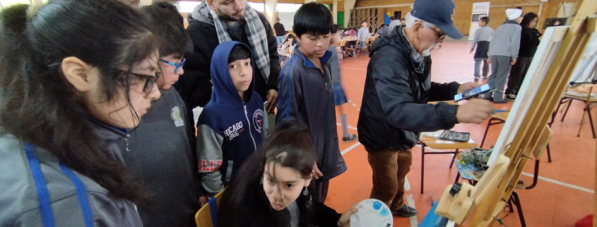 na actividad de vinculación artístico-cultural organizada por la Cooperativa Rutarte Sur se desarrolló en la escuela Melipulli N°3, ubicada en la comuna de Puerto Montt. En la ocasión, un grupo de artistas realizó una muestra y actividades con las niñas y niños del colegio, acercándolos al arte.