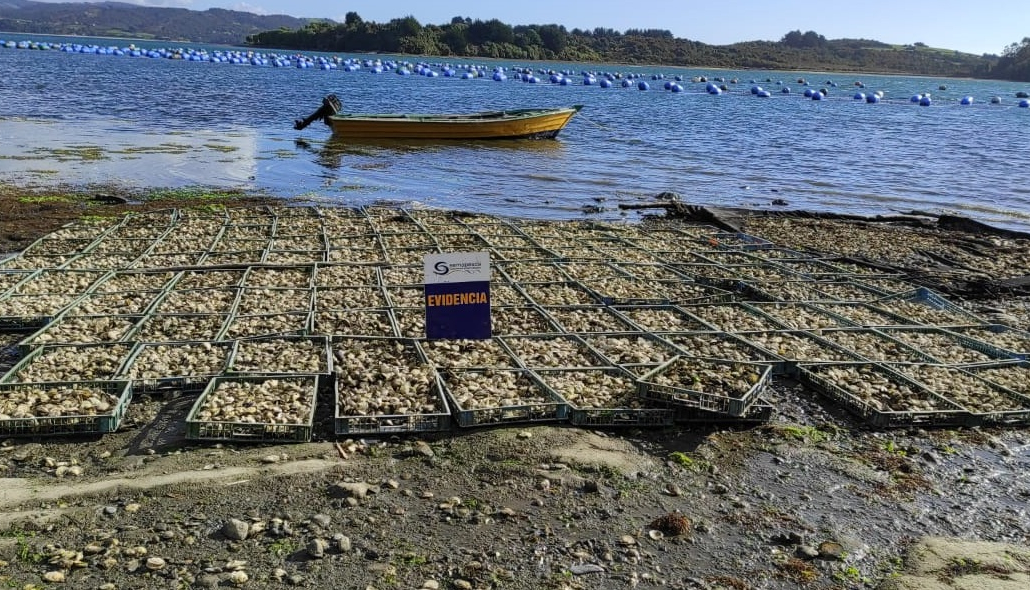 Este lunes, una vez que estuvieron seguros de las maniobras ilegales, los funcionarios solicitaron apoyo de la Autoridad Marítima para dar inicio a la fiscalización. Detectando un total de 2.531 kilos de ostra chilena apozada en el lugar donde opera el centro de cultivo.
