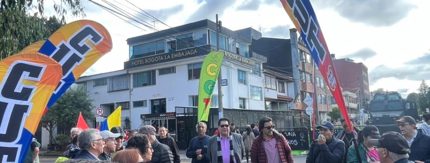 Las y los servidores públicos de Colombia, junto a otros trabajadores y trabajadoras de distintas organizaciones y centrales sindicales como la CGT, se reunieron el jueves 15 de enero en Bogotá para manifestarse frente a la sede del gobierno de los Estados Unidos en ese país.