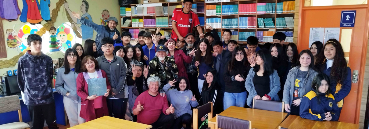 En un encuentro pedagógico y cultural, la cooperativa de artistas Rutarte Sur y la galería de Arte Basg marine realizaron un encuentro donde desbordó el arte, la reflexión y la cultura con las y los estudiantes de la Escuela Anahuac en Chinquihue