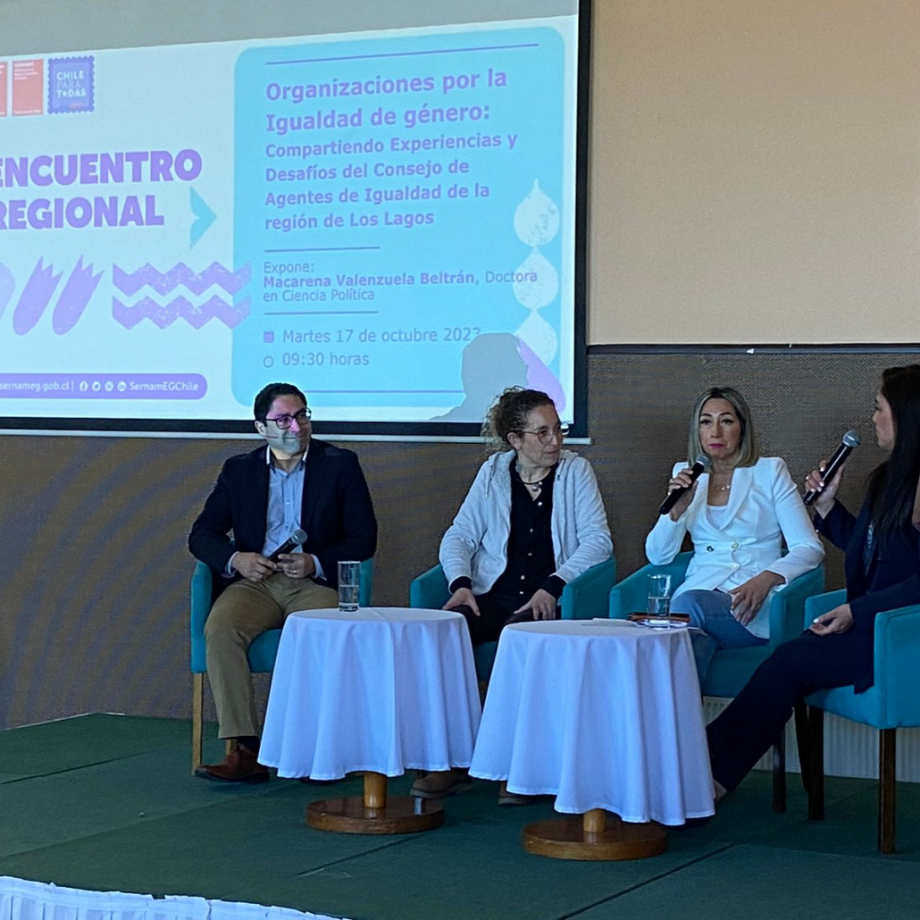 La actividad denominada “Encuentro Nacional: Organizaciones por la Igualdad de género: Compartiendo Experiencias y Desafíos del Consejo de Agentes de Igualdad de la región de Los Lagos”, busca visibilizar y compartir experiencias en los avances de las organizaciones participantes del Consejo. En el mismo ámbito, el encuentro permitió generar espacios para ampliar las redes estratégicas de trabajo de las personas participantes y desarrollar proyectos intersectoriales entre todos los actores presentes.