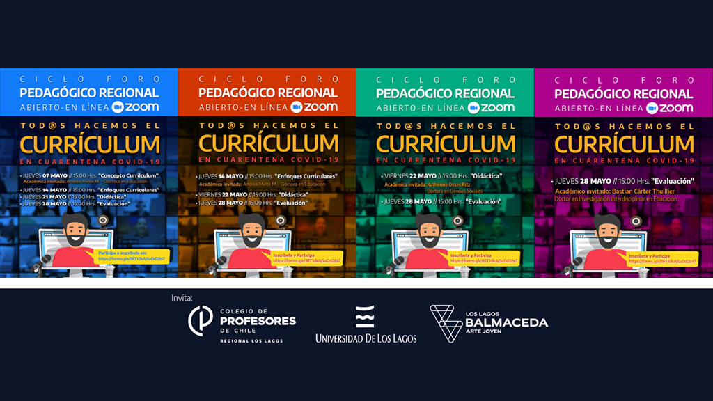 “Tod@s Hacemos el Currículum en Cuarentena Covid-19” es el nombre de los cuatro encuentros digitales que congregó a profesionales y profesores de diferentes instituciones académicas y colegios del sur del país. El primer foro se denominó “¿Qué es el Currículum?”, el segundo abordó el tema “Enfoque curricular, qué tipo de sociedad formamos”; el tercero “Didáctica curricular” y el último fue “Evaluación curricular”. Las jornadas permitieron a los docentes tensionar, reflexionar y revisar las diferentes formas de educar, en medio de la crisis sanitaria. La participación de los docentes superó las doscientas conexiones, a lo largo de los cuatros foros desarrollados.