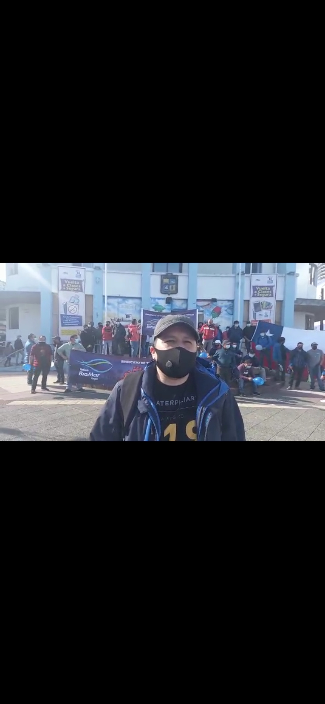 Trabajadores en huelga de empresa Biomar, protestan frente a municipalidad de Puerto Montt