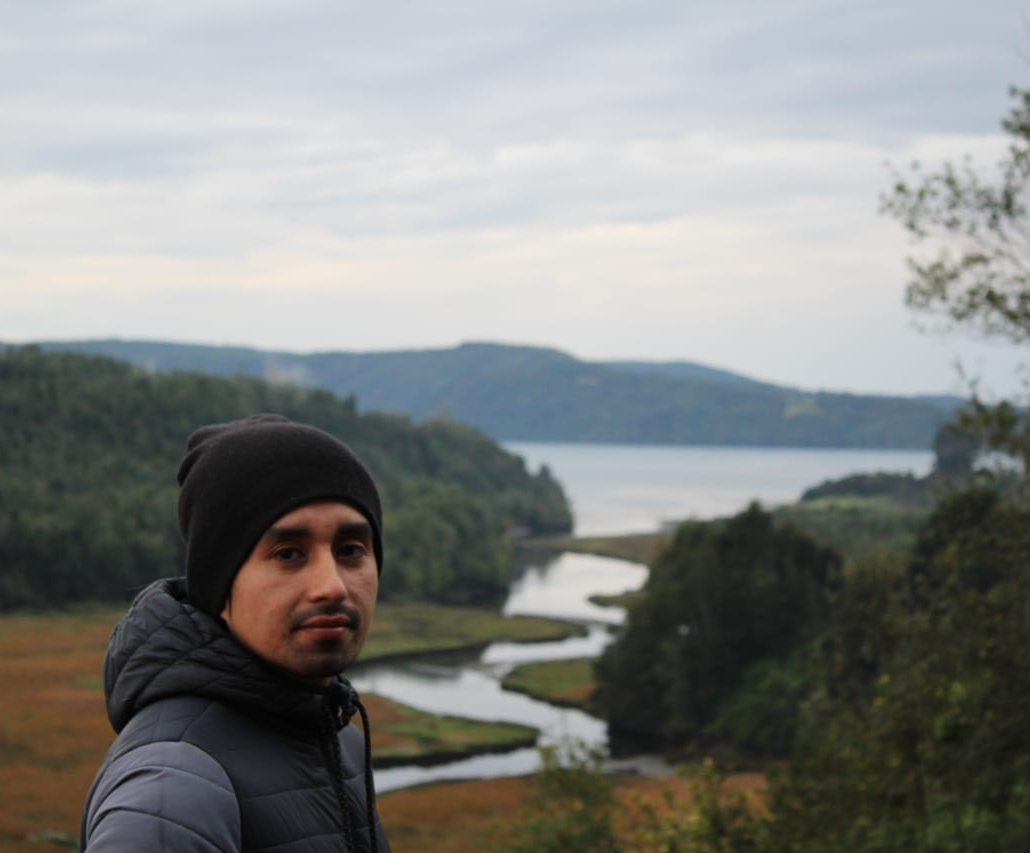 Osvaldo de 27 años, es artesano textil de la Isla Cailín, comuna de Quellón. Cuenta con 14 años de trayectoria en el oficio tradicional. Participó en varias oportunidades como tallerista de telar en diferentes instituciones.