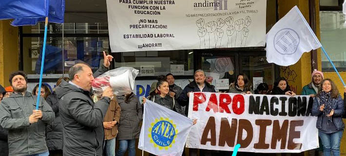 on movilizaciones ascendentes, protestas en los diferentes servicios y en huelga de brazos caídos se encuentran las asociaciones suscritas a Anef Chile, como son las y los trabajadores de Ministerio de Educación agrupados en [ANDIME] más los funcionarios del Servicio Nacional del Patrimonio Cultural [SERPAT] se encuentran movilizados a nivel nacional producto del incumplimiento a las demandas de mejoramiento salarial, infraestructura deteriorada, sobrecarga laboral entre otras.