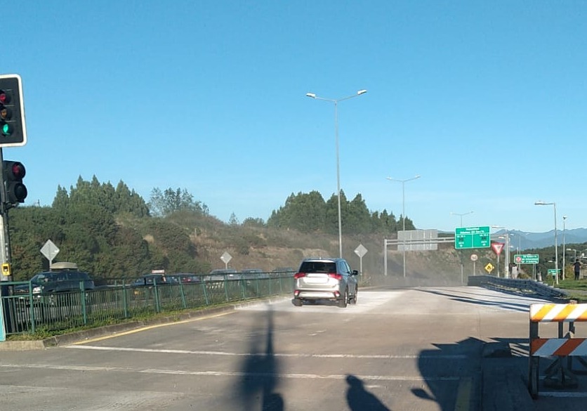 on anticipación se abrieron las pistas del tránsito vehicular del Viaducto de Puerto Montt, luego de estar casi 3 semanas de trabajo intenso para reparar el desnivel y grietas en el pavimento en el ingreso del viaducto a la altura de la calle Volcán Michimavida.