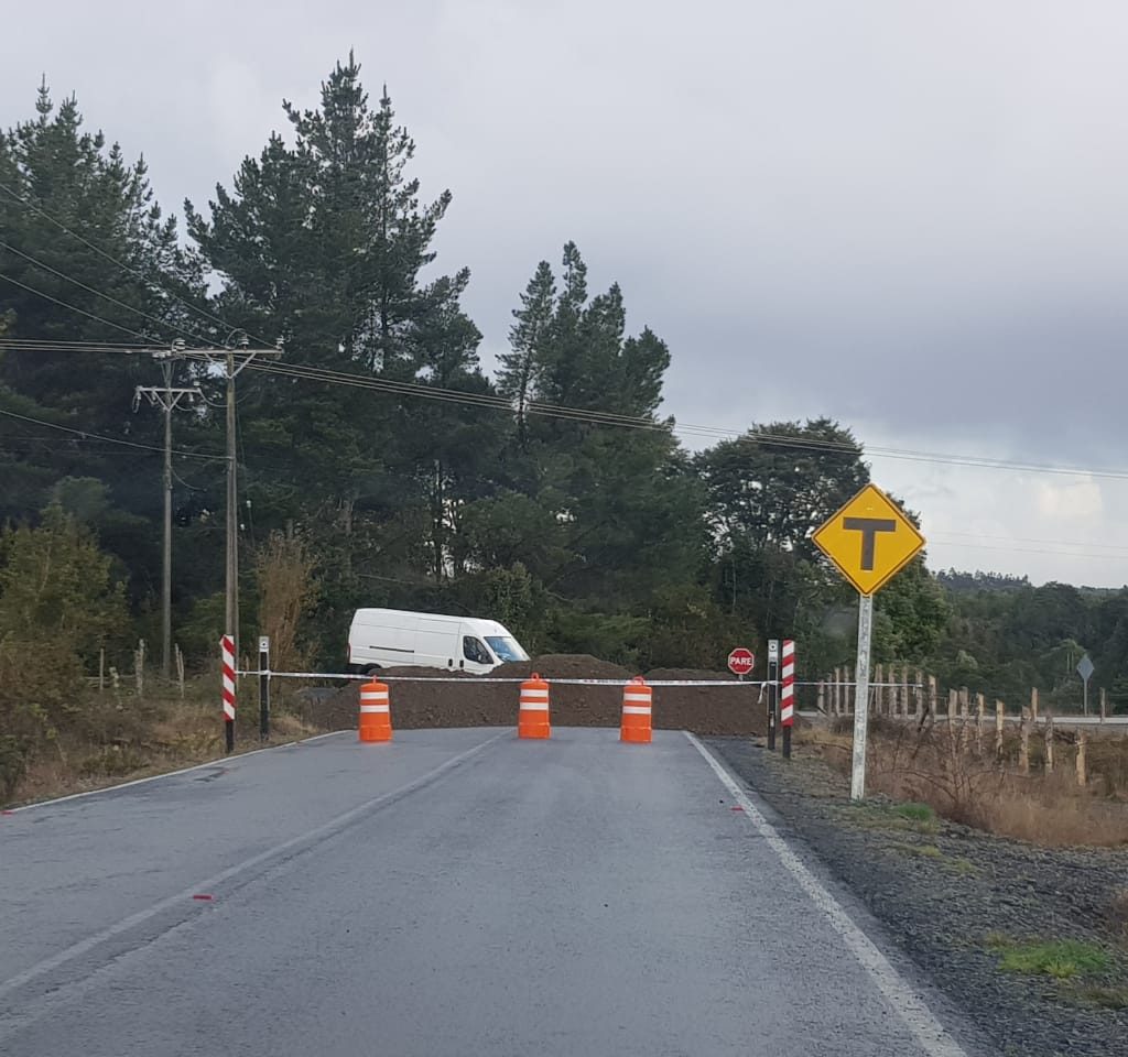 Vialidad cerró con columna de ripio acceso desde Puerto Montt a Colonia Tres Puentes