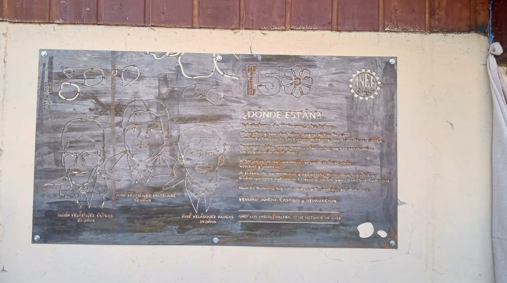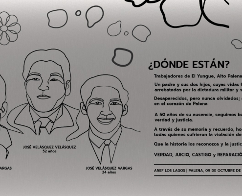 La Agrupación Nacional de Empleados Fiscales, Anef Los Lagos, presidida por Pamela Espinoza, gestionó junto a la familia Velásquez y amigos, la colocación de una placa en la comuna de Palena, para mantener viva su memoria. En una ceremonia sencilla y emotiva, en la que también estuvo presente el Presidente Nacional de Anef, José Pérez Debelli, se rindió un homenaje a quienes fueron víctimas de la dictadura, aún es los rincones más remotos del país, “La memoria es crucial para que estos hechos no se repitan y para que las futuras generaciones entiendan la importancia de los derechos humanos. “